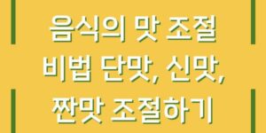 요리를 하다 보면 간혹 음식의 맛이 예상과 다르게 나올 때가 있습니다. 특히 단맛, 신맛, 짠맛이 지나치게 강하거나 약할 경우, 어떻게 대처해야 할지 고민이 되실 수 있습니다. 이 글에서는 각 맛의 …