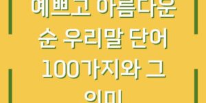 한국어는 그 자체로 아름다움을 지닌 언어입니다. 특히 순우리말은 한국인의 정서를 담고 있으며, 자연과 삶의 깊이를 반영하는 단어들이 많습니다. 이번 글에서는 예쁘고 아름다운 순우리말 단어 100개를 소개하고, 각 단어의 의미와 함께 …