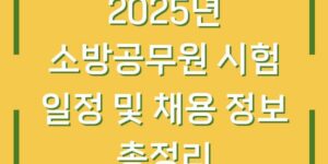 2025년 소방공무원 시험은 많은 예비 소방관들에게 중요한 기회입니다. 이번 글에서는 소방공무원 시험의 일정, 채용 정보, 시험 과목 및 합격자 발표에 관한 내용을 상세히 살펴보도록 하겠습니다. 2025년 소방공무원 시험 일정 2025년 …
