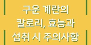 구운 계란은 간편하고 영양이 풍부한 음식으로 많은 이들에게 사랑받고 있습니다. 이번 글에서는 구운 계란의 칼로리, 다양한 효능, 그리고 섭취 시 주의사항에 대해 자세히 살펴보겠습니다. 구운 계란의 칼로리 구운 계란은 조리 …