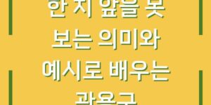 관용구는 특정한 의미를 지니면서도 그 의미가 직접적으로 드러나지 않는 표현입니다. 한국어에서 많이 사용되는 관용구 중 하나인 ‘한 치 앞을 못 보다’는 우리가 사는 현실의 불확실성을 잘 나타냅니다. 이 글에서는 해당 …