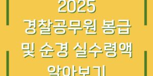 2025년 경찰공무원의 봉급 및 순경 실수령액에 대한 관심이 높아지고 있습니다. 경찰공무원은 공공의 안전을 책임지는 중요한 직무를 수행하고 있으며, 이로 인해 그들의 봉급과 복리후생에 대한 정보는 많은 이들에게 중요하게 여겨집니다. 이번 …