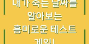 최근 인터넷에서 화제가 되고 있는 “내가 죽는 날짜”라는 테스트 게임에 대해 소개해 드리겠습니다. 이 게임은 단순히 재미와 흥미를 추구하는 가상의 시나리오를 기반으로 하며, 참가자들이 여러 가지 질문에 답하면서 자신의 삶에 …