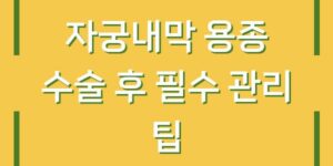 자궁내막 용종 제거 수술은 많은 여성들이 경험하는 시술 중 하나입니다. 자궁내막에 발생하는 용종은 대부분 무증상으로 발견되지만, 증상이 있는 경우에는 적절한 조치가 필요합니다. 이 글에서는 자궁내막 용종 수술 후에 필요한 관리 …