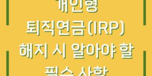 개인형 퇴직연금(IRP)은 근로자들이 노후를 준비하는 중요한 수단 중 하나입니다. 하지만 이 제도를 통해 세액공제를 받았던 만큼, 해지 시에는 몇 가지 주의해야 할 사항이 있습니다. 본 글에서는 개인형 퇴직연금(IRP)의 해지 방법과 …