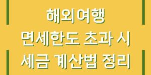 해외여행을 다녀올 때 많은 분들이 면세한도를 고려하게 됩니다. 면세한도란 해외에서 구매한 물품에 대해 세금을 부과하지 않는 한도를 의미하는데, 이를 초과할 경우 세금을 내야 합니다. 이번 글에서는 해외여행 시 면세한도를 초과했을 …