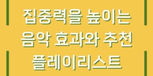 공부를 하면서 음악을 듣는 것은 많은 사람들에게 익숙한 습관입니다. 음악이 우리의 뇌와 정서에 미치는 영향은 매우 다양하며, 올바른 음악을 선택하는 것은 집중력을 향상시키는 데 큰 도움이 됩니다. 이 글에서는 집중력을 …