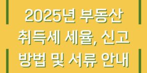 부동산 시장이 변화하고 있는 가운데, 2025년부터 시행될 부동산 취득세에 대한 정보는 특히 중요합니다. 이 글에서는 2025년 부동산 취득세 세율, 신고 방법, 그리고 필요한 서류에 대해 종합적으로 정리해 보겠습니다. 2025년 부동산 …