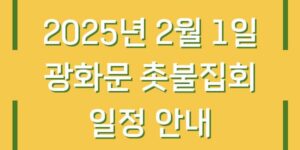 2025년 2월 1일(토), 서울 광화문과 안국역 일대에서 윤석열 대통령 퇴진 및 사회대개혁을 촉구하는 촛불집회가 열립니다. 이번 집회는 많은 시민들이 모여 대한민국의 정치적 변화를 요구하는 중요한 행사로 자리잡고 있습니다. 이에 따라 …