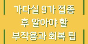 가다실 9가는 자궁경부암을 예방하기 위한 백신으로, HPV(인유두종 바이러스) 감염으로부터 보호하는 데 중요한 역할을 합니다. 이 글에서는 가다실 9가 접종 후 주의해야 할 부작용, 회복 방법, 그리고 예방 조치에 대해 자세히 …