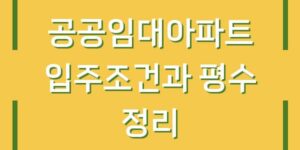 공공임대아파트는 많은 분들에게 안정적인 주거 공간을 제공하는 중요한 주택 유형입니다. 특히, 저소득층과 중산층 가구에게는 경제적 부담을 덜 수 있는 훌륭한 대안이 될 수 있습니다. 이번 글에서는 공공임대아파트의 입주조건과 평수에 대해 …