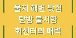 물치 해변은 아름다운 바다와 함께 신선한 해산물을 즐길 수 있는 명소로 자리 잡고 있습니다. 그 중에서도 물치항 회센터는 많은 이들에게 사랑받는 맛집 중 하나입니다. 이곳은 단순한 해산물 식당이 아니라, 신선한 …