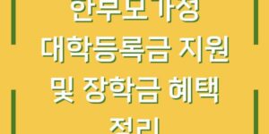 대학 등록금은 많은 가정에게 큰 부담이 될 수 있으며, 특히 한부모가정의 경우 경제적 어려움은 더욱 심각하게 다가올 수 있습니다. 그러나 정부와 다양한 기관에서는 이러한 부담을 덜기 위해 여러 지원 프로그램과 …