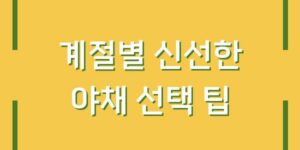 야채는 건강한 식단의 필수 요소로, 제철에 수확된 신선한 야채를 선택하는 것이 영양가와 맛을 극대화하는 방법입니다. 계절별로 어떤 야채들이 제철인지, 그리고 이를 선택할 때 주의해야 할 점들을 살펴보겠습니다. 봄철 야채 선택 …