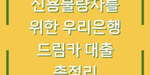 신용불량자는 금융 거래에서 여러 가지 제약을 받을 수 있습니다. 하지만 신용불량자도 이용할 수 있는 대출 상품들이 존재하는데, 그중 하나가 바로 우리은행에서 제공하는 ‘드림카 대출’입니다. 이 대출 상품은 자동차를 담보로 하여 …