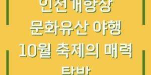 인천개항장 문화유산 야행 축제는 매년 10월에 개최되며, 인천의 역사와 문화유산을 조명하는 특별한 행사입니다. 올해는 특히 10주년을 맞이하여 더욱 풍성한 프로그램과 다양한 볼거리가 마련되어 있습니다. 이번 축제는 인천이 ‘한국 최초의 국제도시’라는 …