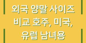 양말은 일상생활에서 없어서는 안 될 필수 아이템입니다. 그러나 각 나라별로 사이즈 체계가 다르기 때문에 해외에서 양말을 구매할 때 혼란을 겪는 경우가 많습니다. 이번 글에서는 호주, 미국, 유럽, 그리고 한국의 양말 …