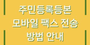 주민등록등본은 개인의 신분을 증명하는 중요한 서류로, 다양한 상황에서 필요하게 됩니다. 특히, 동사무소를 직접 방문하기 어려운 경우 모바일을 통해 주민등록등본을 팩스로 전송하는 것이 매우 유용합니다. 이번 글에서는 주민등록등본을 모바일로 무료 팩스 …