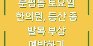 등산은 많은 사람들이 자연을 느끼고 운동을 즐기는 좋은 방법입니다. 그러나 등산 중에는 다양한 부상의 위험이 존재하며, 특히 발목 부상은 매우 흔하게 발생하는 문제입니다. 발목 부상은 가벼운 염좌에서부터 심각한 골절까지 다양하게 …