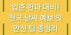 입춘이 다가오고 있지만, 올해는 예년과 달리 강력한 한파가 찾아올 것으로 예상됩니다. 이러한 기온 변화에 적절히 대비하는 것이 필요합니다. 이번 포스팅에서는 입춘 한파의 원인과 기온 변화, 그리고 효과적인 대비 방법에 대해 …