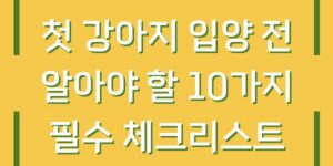 강아지를 처음 입양하는 것은 많은 기쁨을 가져다주는 동시에 큰 책임감을 수반하는 일입니다. 새로운 가족 구성원을 맞이하기 위해서는 충분한 준비가 필요합니다. 강아지가 새로운 환경에 잘 적응하고 행복하게 살아갈 수 있도록 여러 …