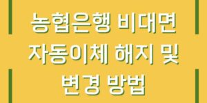 농협은행의 자동이체 서비스는 많은 고객에게 편리함을 제공합니다. 그러나 때로는 자동이체를 해지하거나 변경해야 할 필요가 생기기도 합니다. 특히 비대면으로 진행할 수 있는 방법이 있다면 더욱 간편할 것입니다. 이번 글에서는 농협은행 비대면 …
