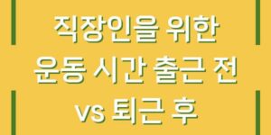 현대 사회에서 직장인들은 바쁜 일상 속에서 운동을 할 시간을 찾기란 쉽지 않습니다. 특히 출근 전이나 퇴근 후 중 언제 운동을 하는 것이 더 효율적일지에 대한 고민은 많은 직장인들이 공감하는 부분입니다. …