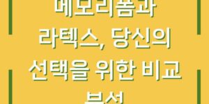 매트리스 선택은 인간의 삶에서 매우 중요한 요소 중 하나입니다. 우리의 수면 환경이 건강과 직결되기 때문에, 어떤 매트리스가 나에게 가장 적합한지 고민하는 것은 필수적입니다. 최근 많은 소비자들이 메모리폼과 라텍스 매트리스를 비교하고 …