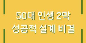 인생의 제2막인 50대는 많은 사람들이 새로운 시작을 꿈꾸는 시기입니다. 하지만 이 시기를 성공적으로 보내기 위해서는 철저한 준비와 전략이 필요합니다. 평균 수명이 늘어나고, 기술과 사회가 급변하는 현대사회에서 50대 이후의 삶은 더 …