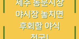 제주 동문시장은 많은 여행객들이 찾는 명소 중 하나입니다. 특히 야시장은 다양한 제주 특산물과 먹거리를 즐길 수 있는 곳으로, 많은 이들에게 사랑받고 있습니다. 이번 글에서는 제주 동문시장 야시장의 매력과 맛있는 음식들에 …