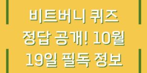 안녕하세요, 독자 여러분! 오늘은 비트버니 퀴즈에 대한 중요한 정보를 공유하고자 합니다. 매일 아침 새로운 퀴즈로 많은 이들의 관심을 끌고 있는 비트버니가 10월 19일 퀴즈 정답을 공개하였습니다. 비트버니는 단순한 앱을 넘어 …