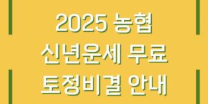 2025년 새해가 다가오고 있습니다. 많은 분들이 새해를 맞아 자신의 운세를 미리 살펴보려는 경향이 있습니다. 특히, 한국 전통에서 유래된 토정비결은 많은 사람들에게 큰 관심을 받고 있습니다. 이번 글에서는 2025년 농협 신년운세 …