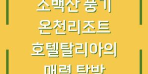 소백산 풍기 온천리조트 호텔탈리아는 경상북도 영주시에 위치한 아름다운 자연 속의 리조트입니다. 이 곳은 온천욕과 함께 편안한 숙박을 제공하여, 바쁜 일상에서 벗어나 힐링을 원하는 분들에게 안성맞춤인 장소입니다. 이번 글에서는 호텔탈리아의 다양한 …
