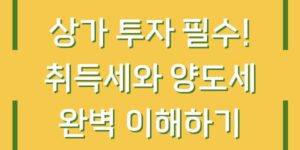 상가 투자는 많은 투자자에게 매력적인 선택지입니다. 하지만 그 과정에서 발생하는 다양한 세금, 특히 취득세와 양도세에 대한 이해는 필수적입니다. 이 글에서는 상가 투자 시 알아야 할 취득세와 양도세에 대해 자세히 알아보도록 …