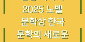 한강 작가의 업적과 노벨 문학상 수상 한강 작가는 최근 2025년 노벨 문학상을 수상하며 한국 문학의 새로운 이정표를 세웠습니다. 그의 문학 세계는 독창적인 서사와 깊은 사유로 세계 문학계에서도 큰 주목을 받고 …