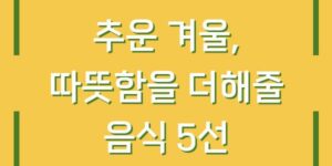 겨울이 오면 많은 사람들이 추위로 인해 몸과 마음이 움츠러들기 마련입니다. 이런 계절에 특히 도움이 되는 것이 바로 따뜻한 음식입니다. 겨울철에 어울리는 음식을 통해 몸을 따뜻하게 하고, 마음까지 따스하게 만들어보는 시간을 …