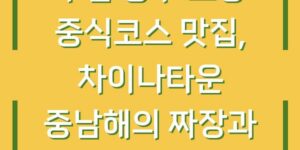 부산 동구 초량 차이나타운에 위치한 중남해는 중식코스 요리로 많은 사랑을 받고 있는 맛집입니다. 이곳은 부산역 1번 출구에서 도보로 약 3분 거리에 위치해 있어 접근성이 뛰어나고, 주변에는 다양한 중식당들이 있어 선택의 …